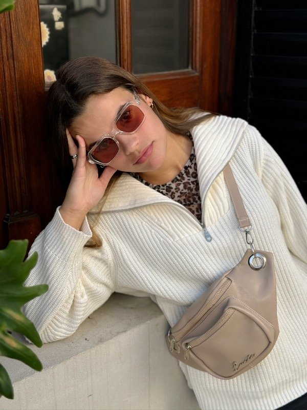 Material: ecocuero, correa desmontable de cinta negra.